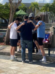 My favorite story from this trip is from Day 1. I was leading a team doing a prayer walk in the community, and we had prayed over the community, including a homeless encampment, but hadn’t encountered a single person. We finally encountered a group of men sitting under a canopy smoking and talking. They were scary looking dudes, and I wasn’t sure about approaching them. We went a little ways past them and grouped up in the shade to pray and ask the Lord what to do next. One of our group felt he clearly heard that we needed to go back and talk to the scary dudes. So, we sent one leader and a few students to do that, while the rest of us prayed for them. The scary dudes were scary, but they were super appreciative for what the team was doing for their community, and eager to have the team pray for them. It was a true testament to the fact that God can soften the hardest of hearts, and even scary need Jesus, and he is ACTIVELY seeking them out.